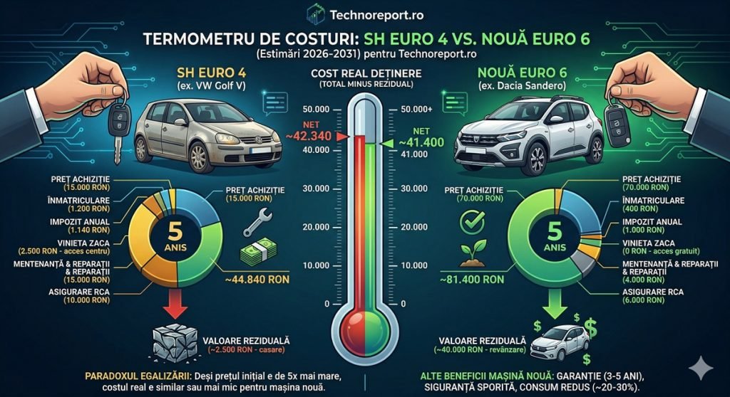 ANALIZĂ COMPARATIVĂ: Sh-ul „de 3.000€” vs. Mașina Nouă. Cât te costă, de fapt, „economia” în următorii 5 ani?