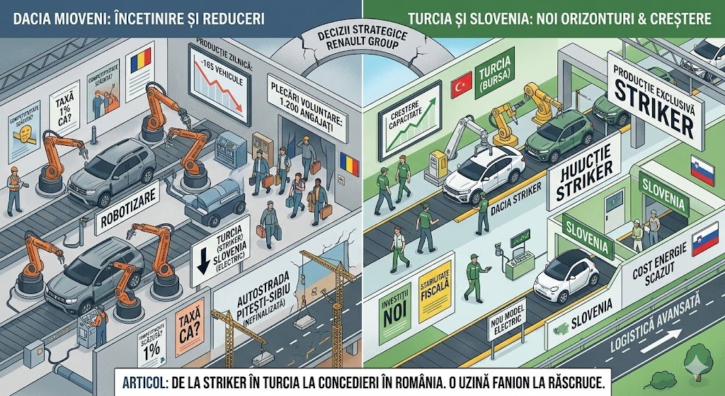 Concluzie Autoreport.ro: În timp ce Dacia Striker devine „vedeta” internațională produsă în Turcia, Mioveniul pare să fie lăsat să gestioneze singur robotizarea și scăderea volumelor. Fără o autostradă completă peste munți și o predictibilitate fiscală reală, riscul ca uzina fanion a României să devină un simplu centru regional de SUV-uri (Duster și Bigster) este mai mare ca niciodată.