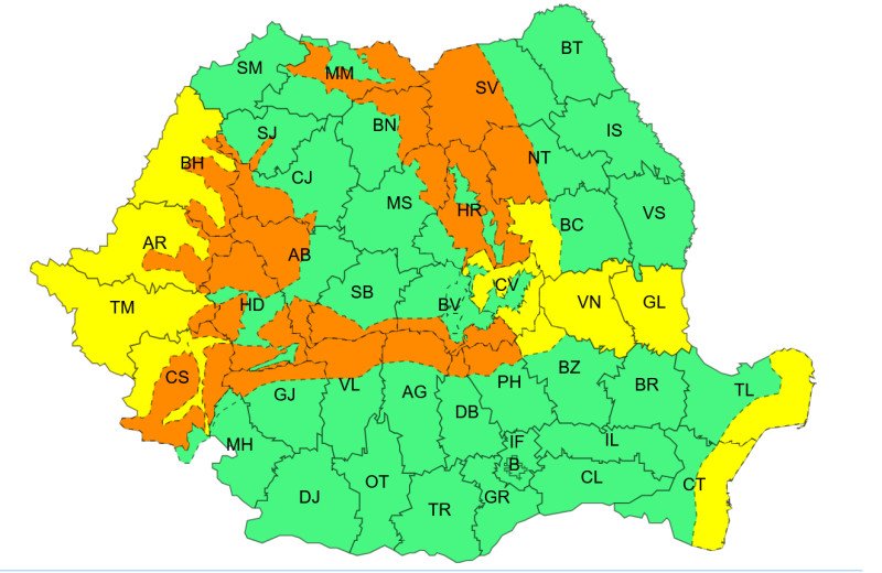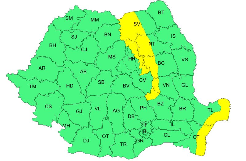ANM a emis şi o avertizare cod galben, pentru intervalul 02 ianuarie, ora 10:30 – 03 ianuarie, ora 10:00.