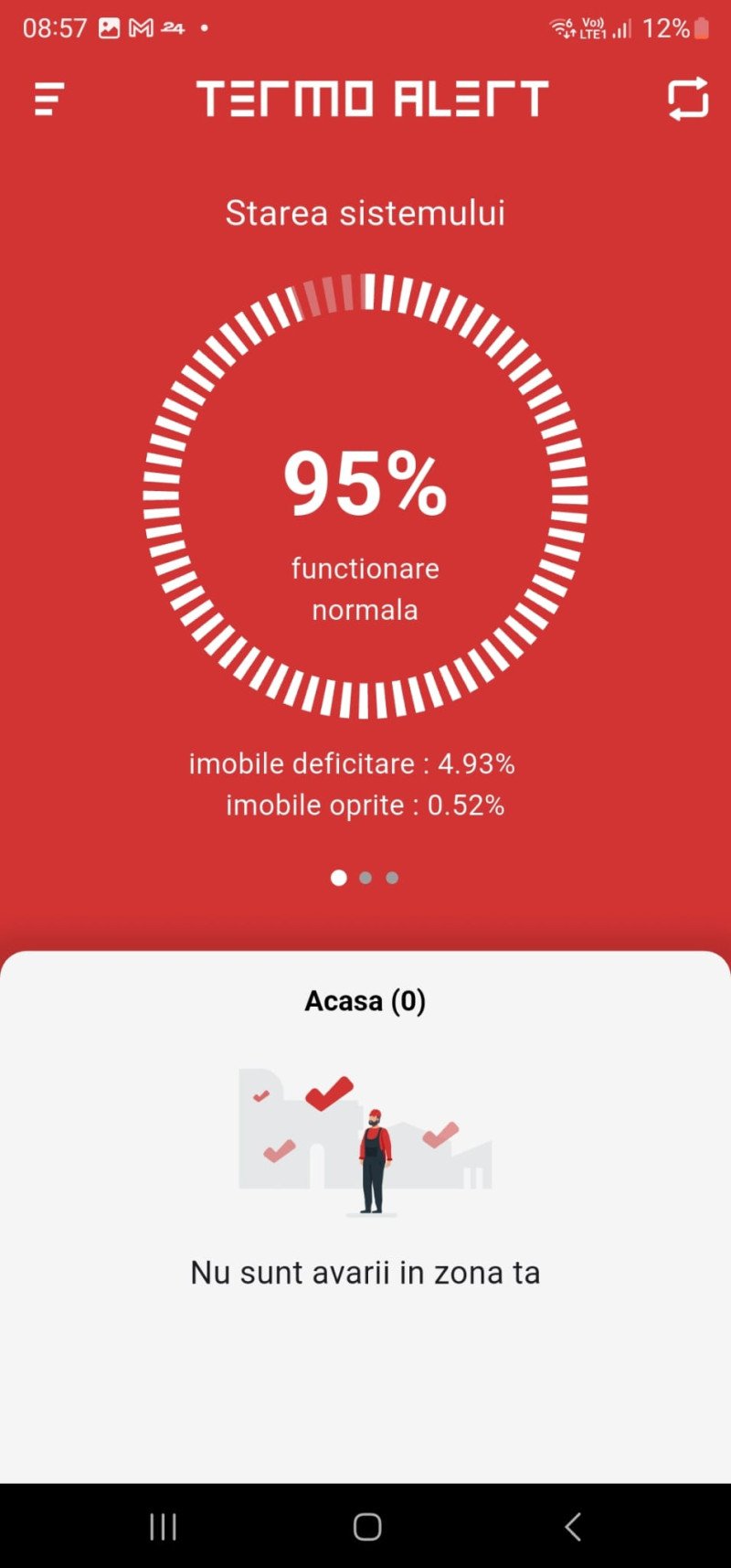 Aplicația TermoAlert, pe care oricare cetățean o poate instala pe telefon, pentru a vedea starea sistemului în zona în care se află în condițiile memorării adresei, indica, încă din după-amiaza zilei de 15 ianuarie, pentru imobilul din Văcărești, că „nu sunt avarii în zona ta”.