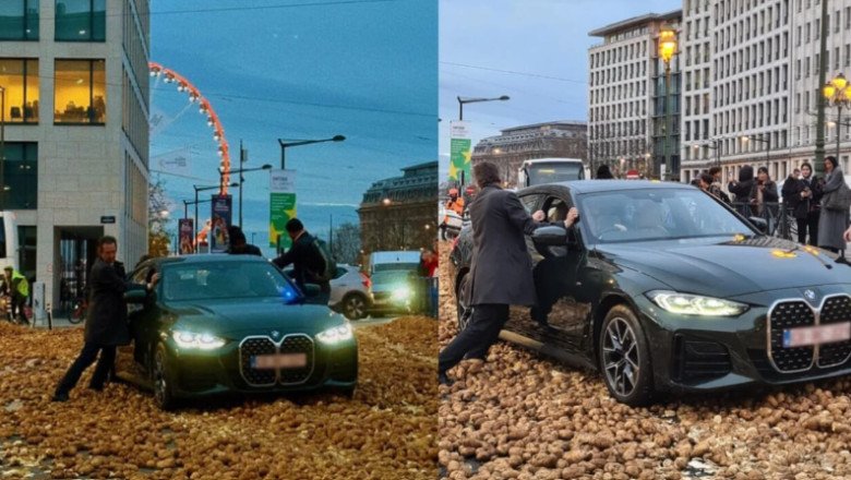 Printre imaginile marcante ale zilei, una prezenta o mașină care a rămas blocată după ce fermierii au vărsat o remorcă de cartofi pe carosabil. Blocat în mijlocul mormanelor, șoferul a coborât din mașină și a încercat să îndepărteze cartofii pentru a putea pleca, sub privirile uimite ale trecătorilor.