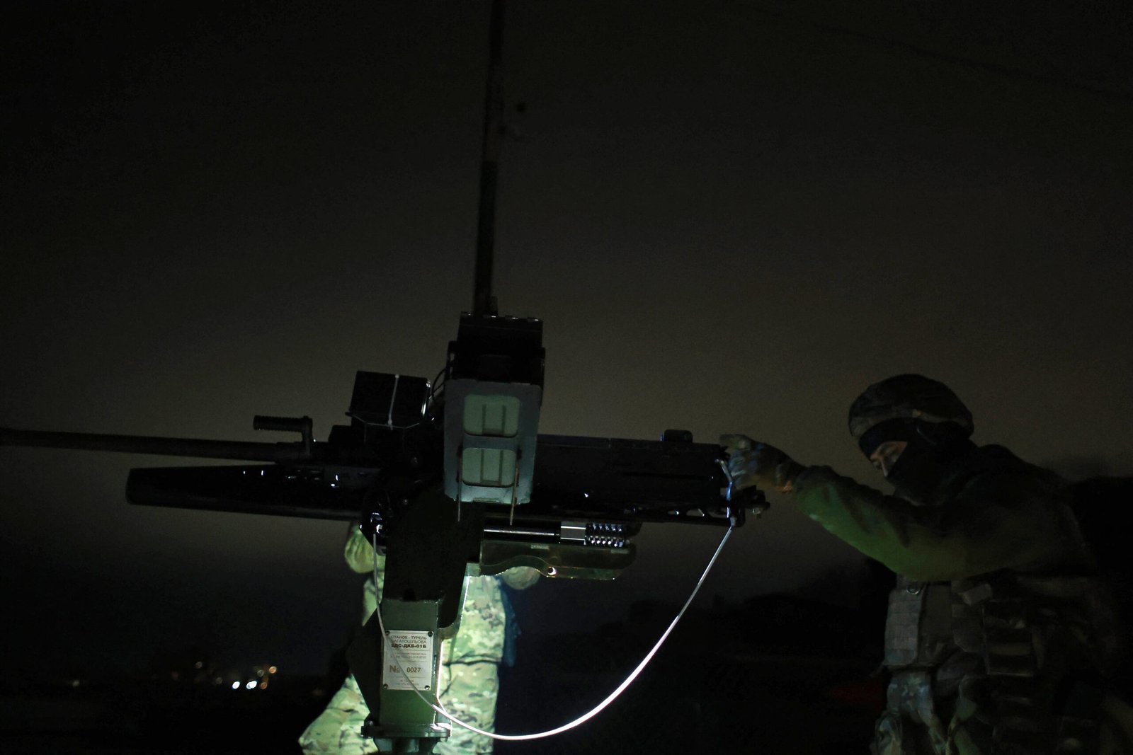 A soldier from a mobile unit of the Tsunami Regiment of the Liut Brigade of Ukraine?s National Police uses an M2 Browning machine gun to shoot down Russian drones in the Odesa district, Ukraine, December 22, 2025. Photo by Nina Liashonok/Ukrinform/ABACAPRESS.COM