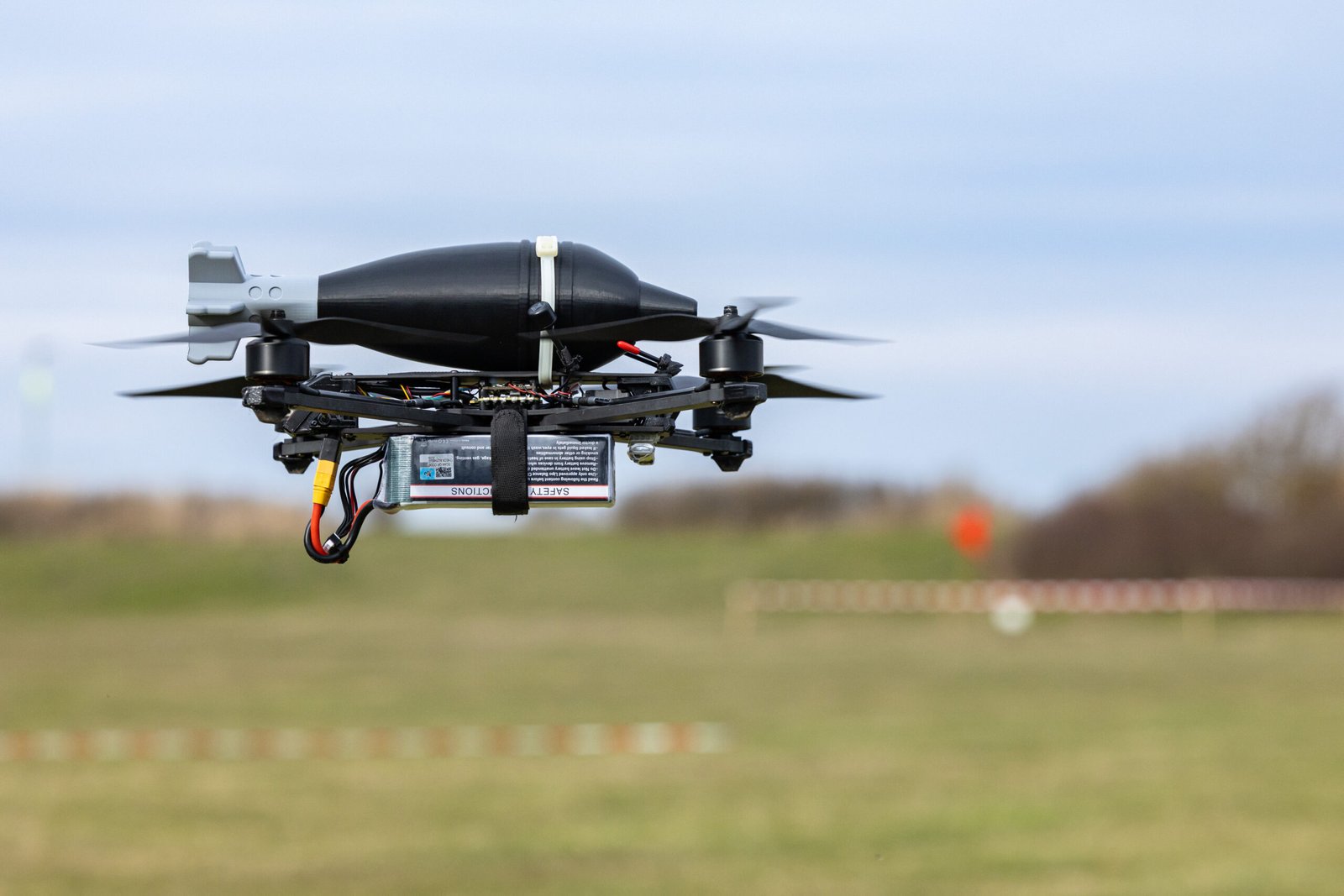 FILED – 19 March 2026, Schleswig-Holstein, Heiligenhafen: A target drone with a dummy explosive flies during a demonstration as part of the three-day „Joint Counter-Terrorism Exercise” (GETEX). Photo: Ulrich Perrey/dpa