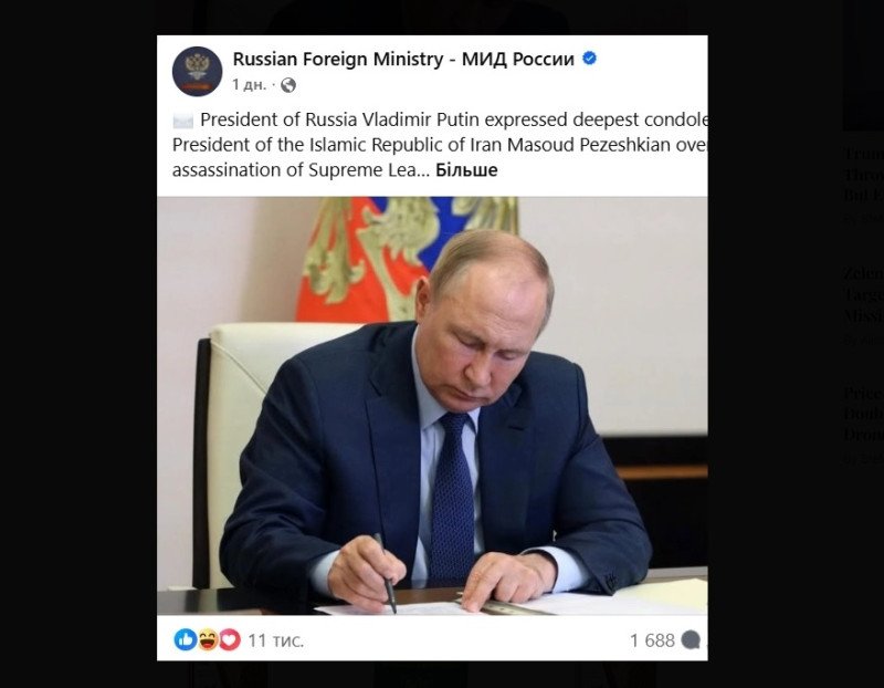 Declarațiile ciudate ale lui Putin de „condoleanțe” pentru moartea ayatollahului Khamenei, fără a acuza forțele care l-au eliminat, au fost ridiculizate nu numai în comentariile de pe pagina Ministerului rus de Externe.