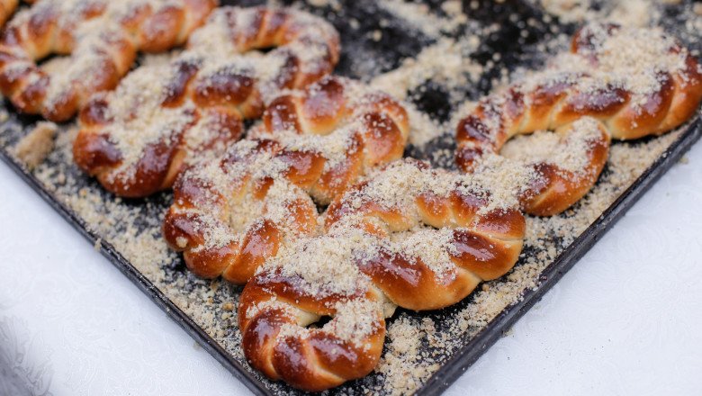 După ce aluatul și-a dublat volumul, acesta se răstoarnă pe o suprafață ușor presărată cu făină și se împarte în opt bucăți egale. Fiecare porție se rulează sub forma unui șnur de aproximativ 25 de centimetri, care este apoi modelat în forma cifrei opt.