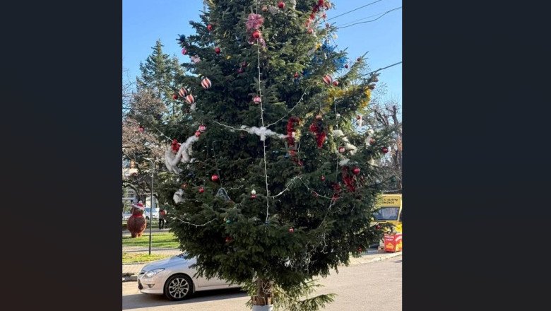 Situație scandaloasă în județul Vâlcea. Bradul instalat și împodobit de Crăciun în centrul orașului Drăgășani a fost tăiat din cimitirul administrat de primărie. Fusese plantat acum 25 de ani pe mormântul unui localnic.
