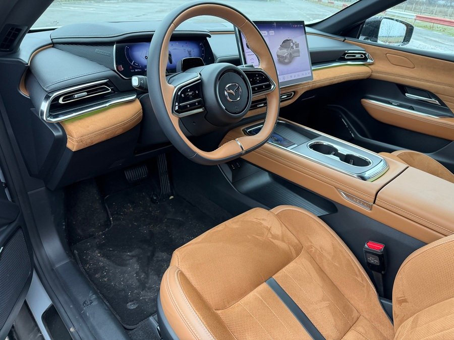 Mazda 6e nu este doar o mașină electrică, ci o declarație de stil. Deși industria tinde spre ecrane gigantice și design minimalist până la extrem, Mazda reușește să păstreze acel „coolness effect” care te face să întorci capul în parcare.