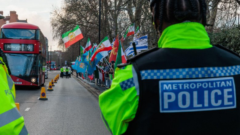 Săptămâna trecută, poliţia a anunţat desfăşurarea de agenţi suplimentari pentru a „preveni orice tulburare” şi a proteja ambasada, care se află lângă Hyde Park.