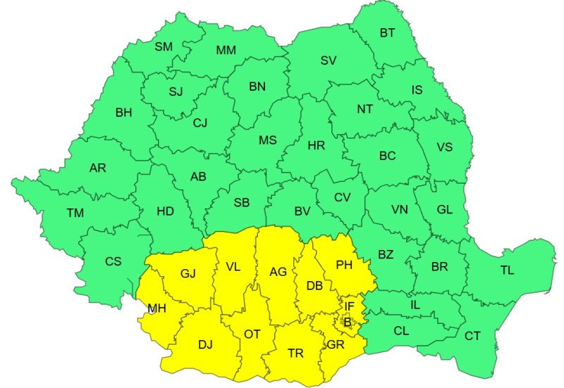 ANM a emis și un cod galben de precipitații însemnate cantitativ și, la munte, la altitudini mai mari de 1600 m ninsori, strat de zăpadă și viscol. Acesta va fi valabil de vineri dimineața până luni la ora 10:00.